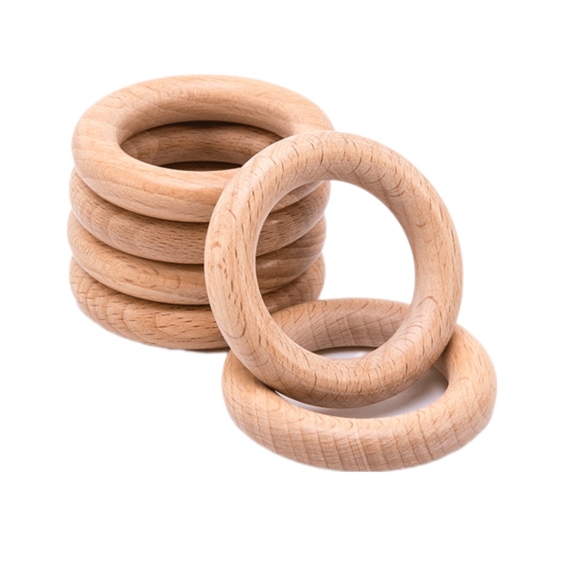Veľmi kvalitné a precízne opracované drevené krúžky z tvrdého bukového dreva s hladučkým povrchom, ktorý je príjemný na dotyk a bezpečný pre deti.