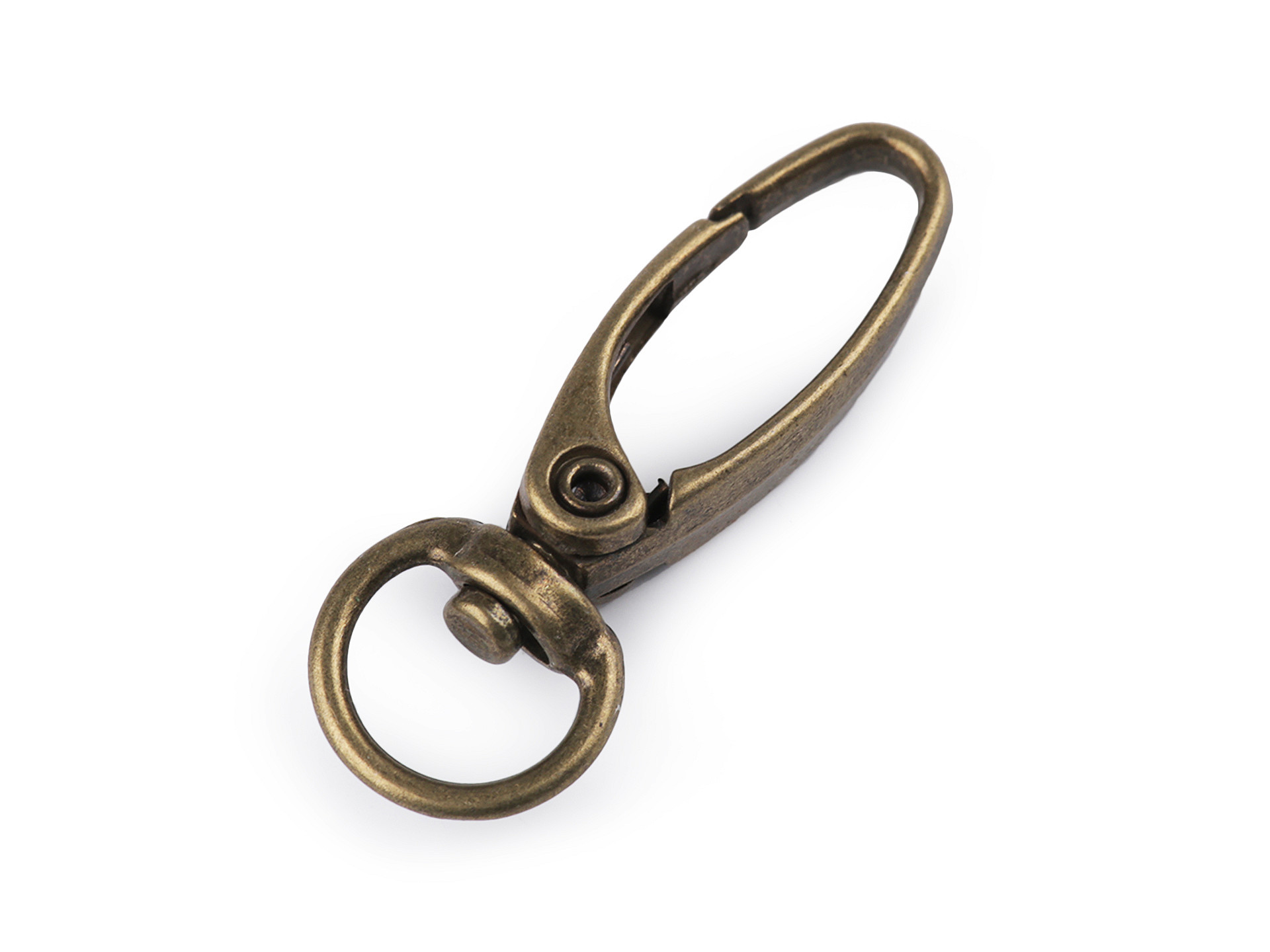 Praktická kovová karabínka je vhodná na výrobu kľúčeniek alebo na pripevnenie retiazok k menším kabelkám. Vďaka otočnému mechanizmu sa pohodlne používa a zostáva pevne uchytená.