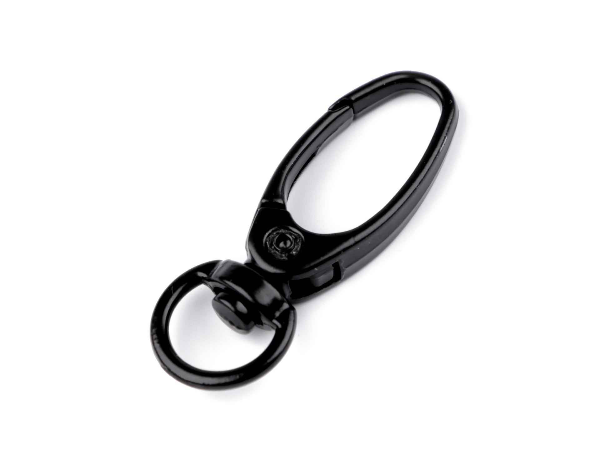 Praktická kovová karabínka je vhodná na výrobu kľúčeniek alebo na pripevnenie retiazok k menším kabelkám. Vďaka otočnému mechanizmu sa pohodlne používa a zostáva pevne uchytená.
