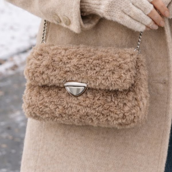 Vyšívaná crossbody kabelka z kožušinovej priadze – mäkká, teplá a štýlová. Netradičná kabelka je ideálna do zimných dní.